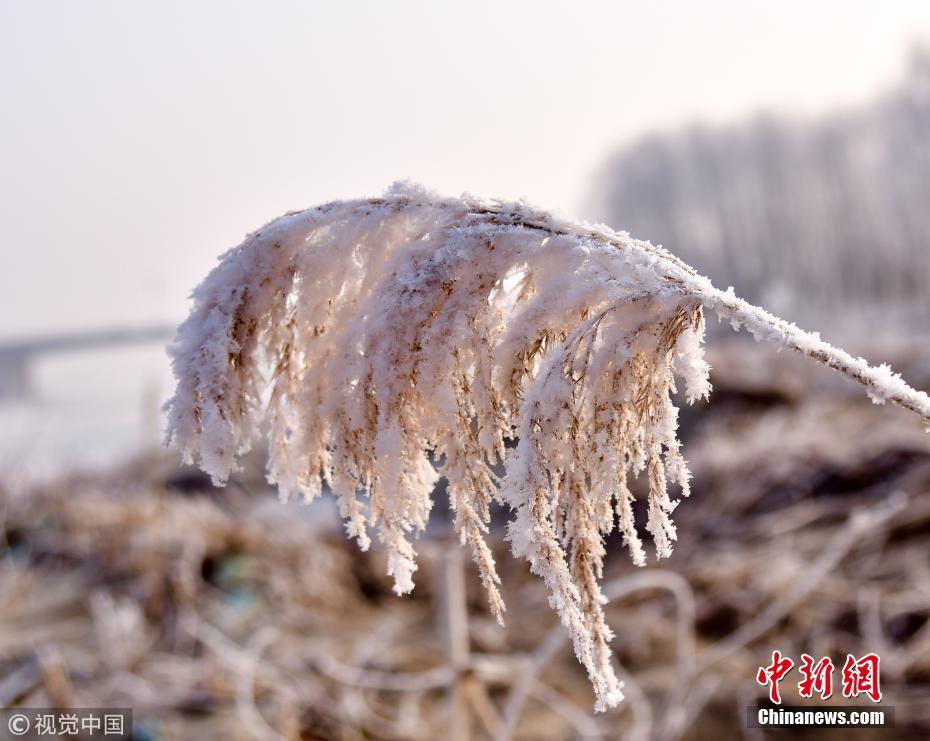2019年1月13日,吉林松原,松花江畔现美丽的雾凇景观。图片来源:视觉中国