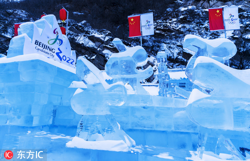2019年1月15日,北京,第一届灵山冰雪节于1月12日在洪水口村开幕。灵山是北京最高峰,依托高海拔的低温环境,利用人工造雪,“灵山冰雪节”为广大游客带来了一场雪之情、冰之魅、食之味、声之韵的全方位体验盛宴,呈现最时尚、动感、刺激、浪漫的清水冬日狂欢盛典冰雪大世界。