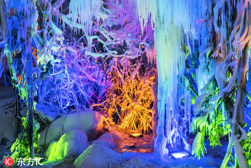 2019年1月15日,北京,第一届灵山冰雪节于1月12日在洪水口村开幕。灵山是北京最高峰,依托高海拔的低温环境,利用人工造雪,“灵山冰雪节”为广大游客带来了一场雪之情、冰之魅、食之味、声之韵的全方位体验盛宴,呈现最时尚、动感、刺激、浪漫的清水冬日狂欢盛典冰雪大世界。