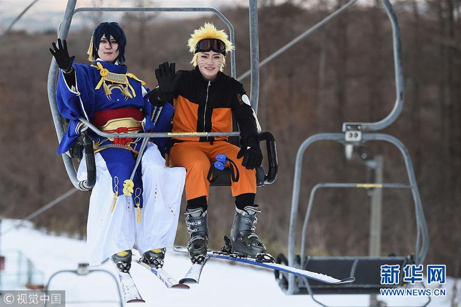 当地时间2019年1月19日,日本那须雪场,当地举办Cosplay节日,Cosplay爱好者装扮成各种形象助阵。(图片来源:视觉中国)