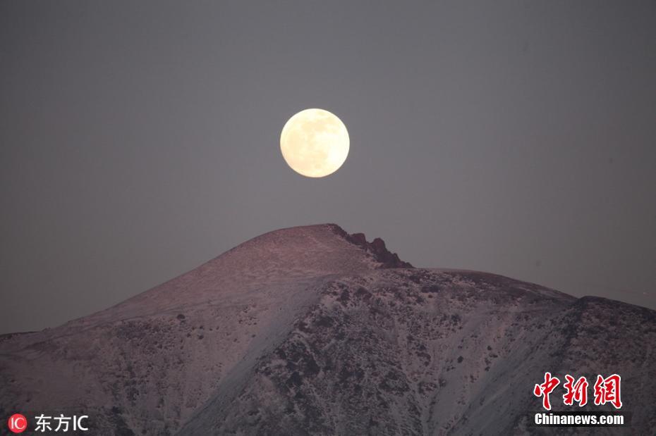 2019年1月20日,新疆哈密西山乡,农历腊月十五,大寒节气,一轮明月(满月)从天山升起,煞是好看! 图片来源:东方IC