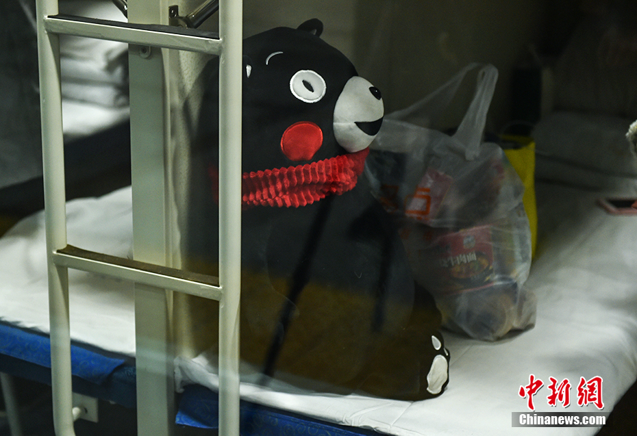 图为旅客带着“熊本熊”回家。  中新网记者 翟璐 摄
