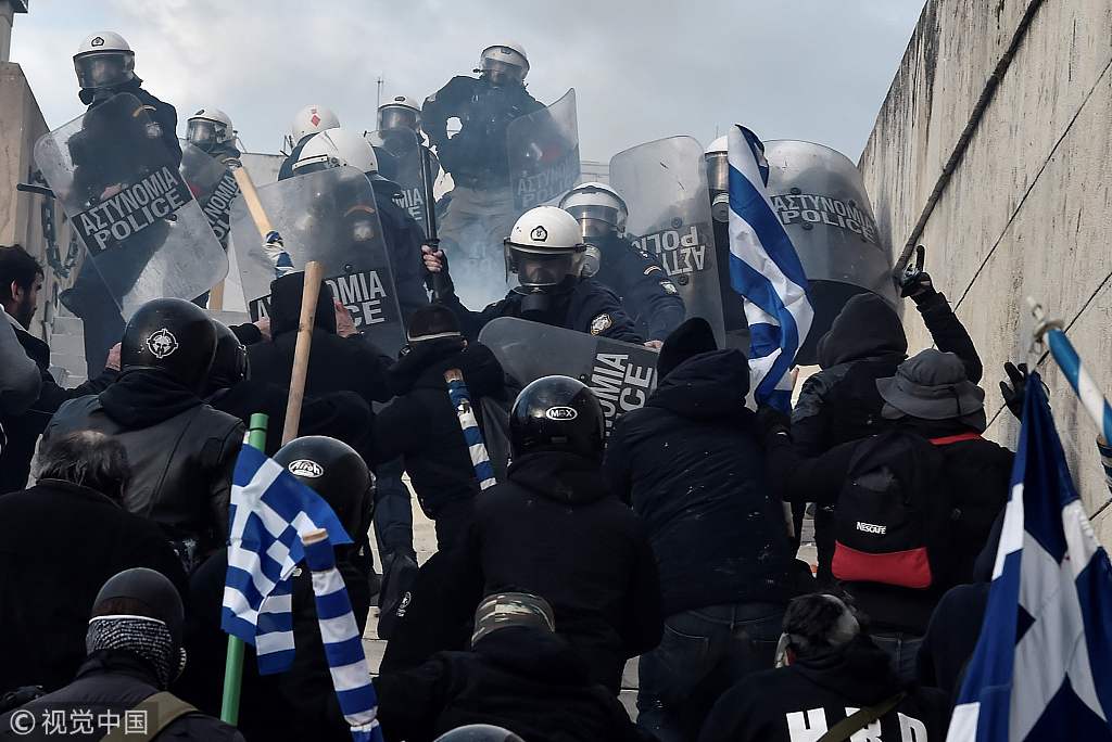 希腊民众反对与马其顿签署改名协议 与警察激烈打斗
