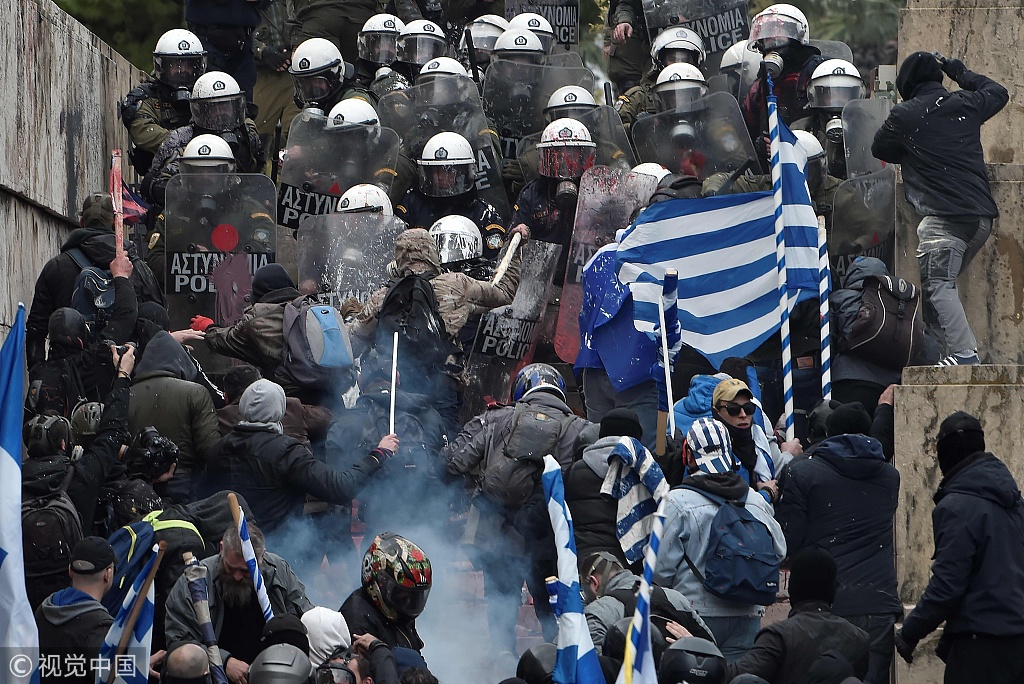 希腊民众反对与马其顿签署改名协议 与警察激烈打斗