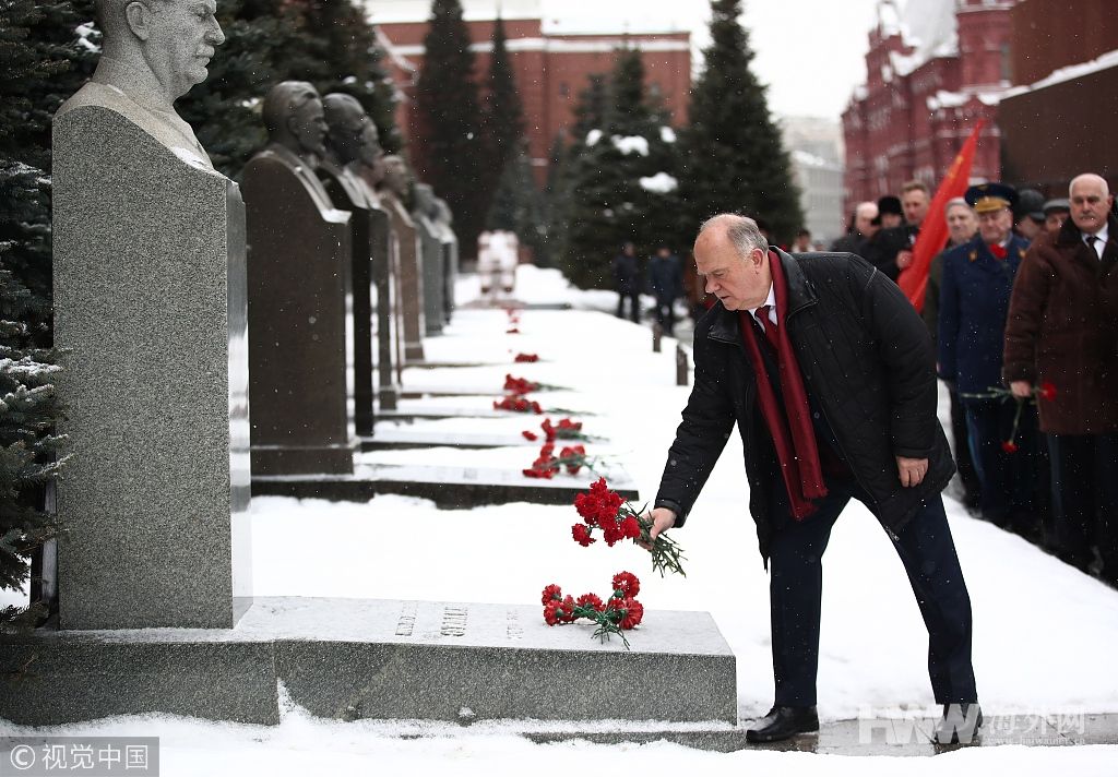 图为久加诺夫向列宁墓献花。列宁是继承了马克思主义,并与俄国革命相结合形成列宁主义,被全世界的共产主义者普遍认同为“国际无产阶级革命的伟大导师和精神领袖”,同时他是20世纪最有影响力人物之一。