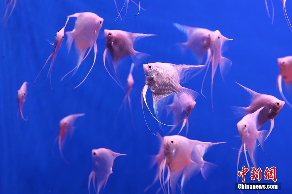 1月21日,有着华丽外表、俊俏容颜的热带海洋鱼类亮相南京海底世界,为新年添色。图为原产于亚马逊河流域的神仙鱼。泱波 摄