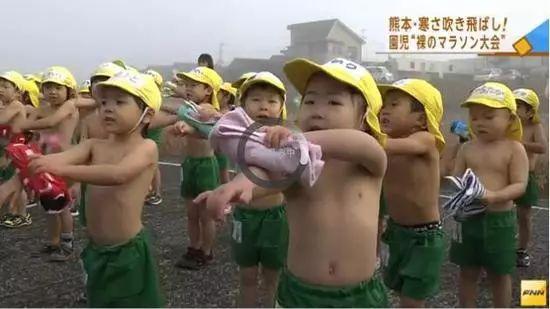 更令人发指的是,有幼儿园甚至还大冷天组织孩子半裸跑马拉松!