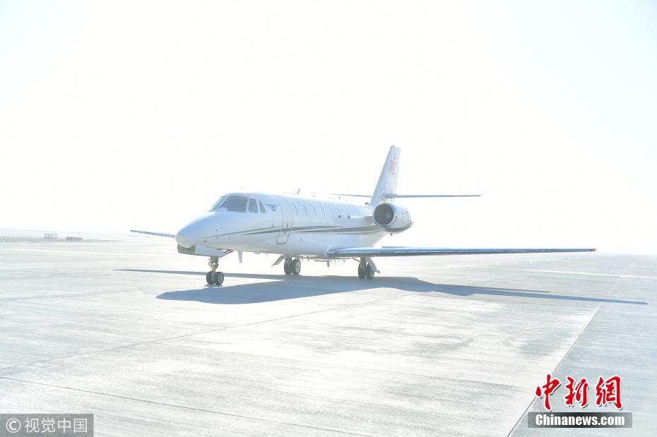 1月22日10时10分,一架“奖状680”校验飞机平稳降落在北京大兴国际机场西一跑道上,留下了第一道飞机轮胎印迹,意味着北京新机场第一场校验任务圆满完成,机场工程建设即将进入验收移交阶段。立辰 摄 图片来源:视觉中国