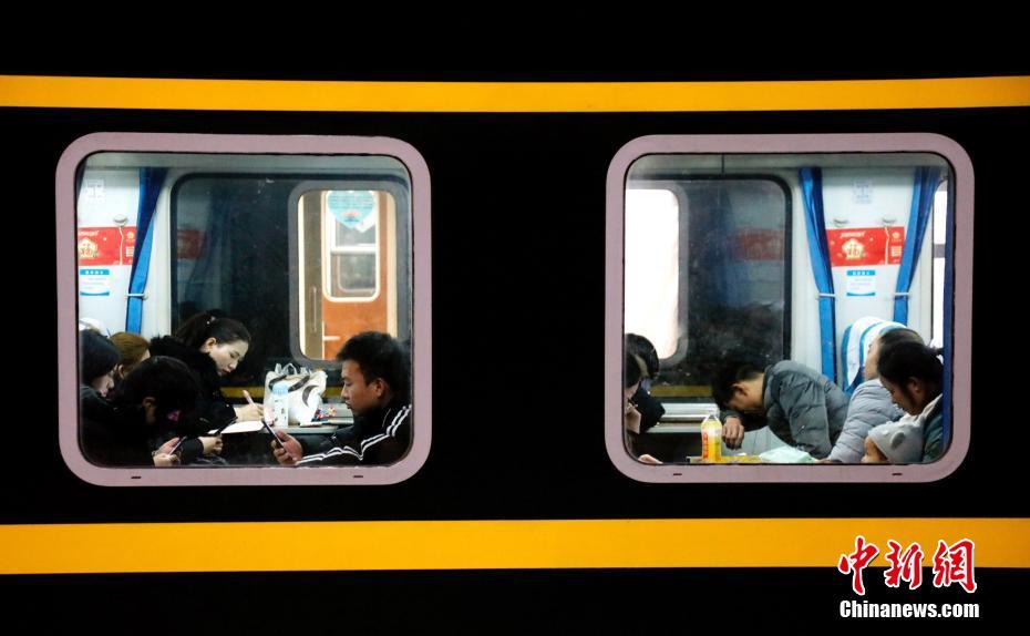 1月21日晚,2019年春运首日,在湖北宜昌火车东站,来自五湖四海的旅客乘坐火车返回家乡。列车在站台短暂停靠,列车里的乘客有的低头看书、看手机,有的向窗外张望,小孩子们一起打闹嬉戏,小小的车厢充满了旅客回家的喜悦,也成为他们临时而温暖的“家”。黄余洋 摄