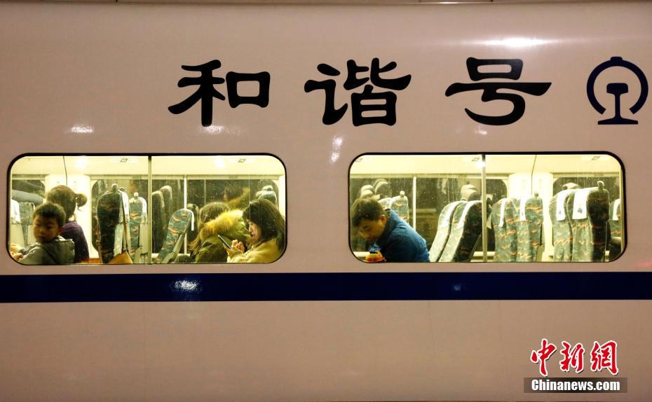 1月21日晚,2019年春运首日,在湖北宜昌火车东站,来自五湖四海的旅客乘坐火车返回家乡。列车在站台短暂停靠,列车里的乘客有的低头看书、看手机,有的向窗外张望,小孩子们一起打闹嬉戏,小小的车厢充满了旅客回家的喜悦,也成为他们临时而温暖的“家”。黄余洋 摄