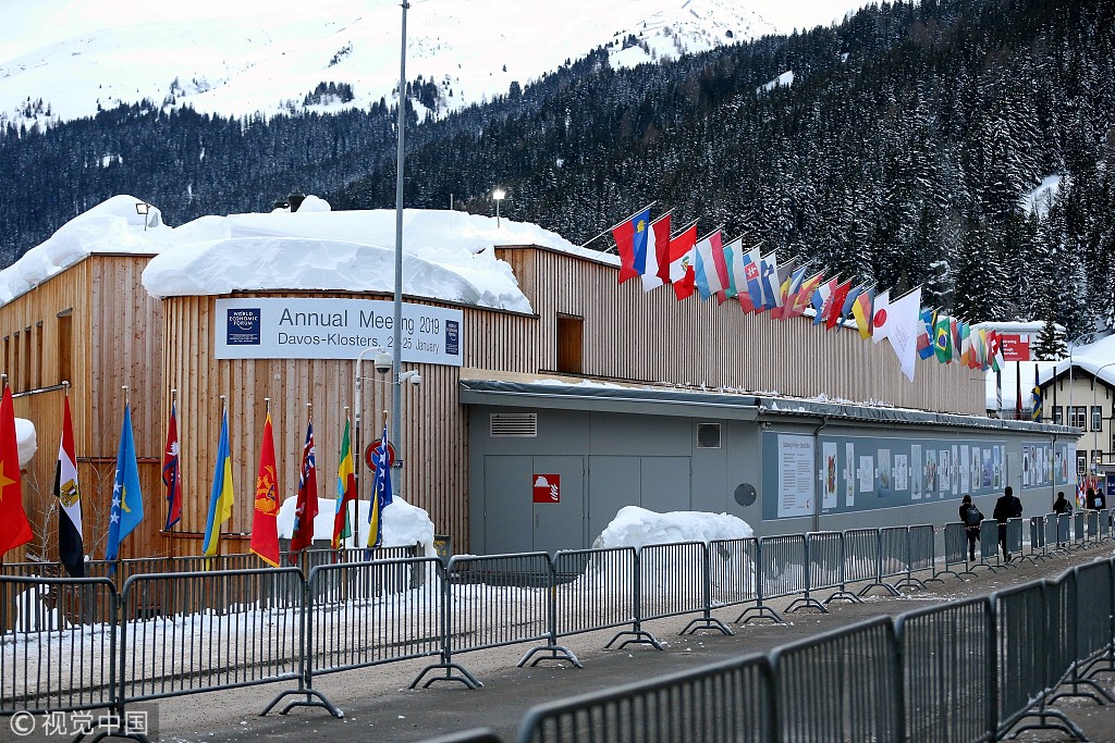 达沃斯冬季论坛在瑞士开幕 警察皑皑白雪中站岗