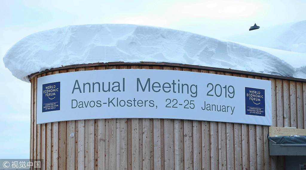 达沃斯冬季论坛在瑞士开幕 警察皑皑白雪中站岗