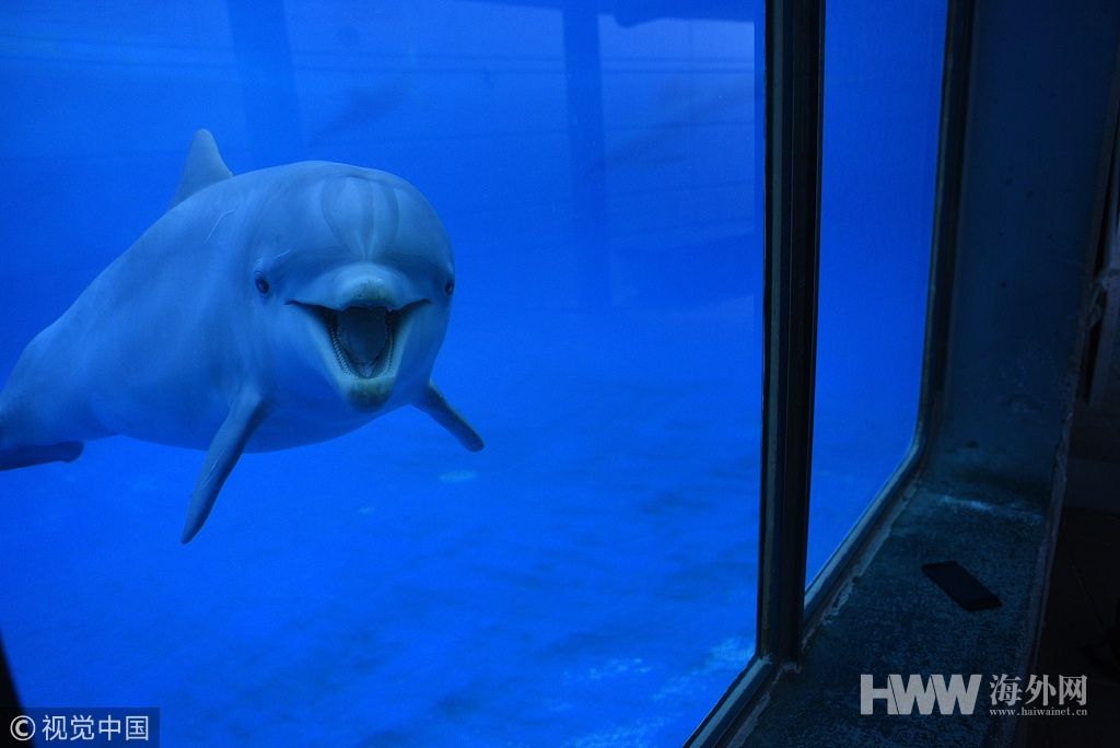 当地时间2019年1月21日,西班牙马德里,马德里动物园的水族馆里,一只雌性海豚宝宝“珊瑚”在自由地游泳。它于2018年1月出生,体重约10公斤,身高约1米。据养海豚的人说,它身体很好。