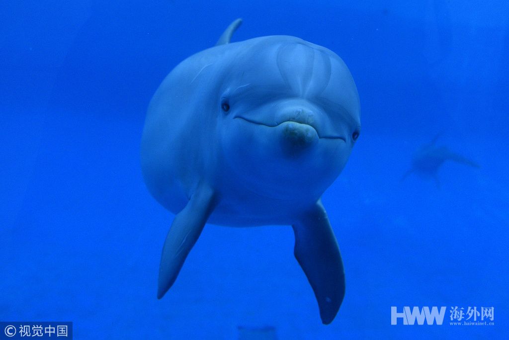 当地时间2019年1月21日,西班牙马德里,马德里动物园的水族馆里,一只雌性海豚宝宝“珊瑚”在自由地游泳。它于2018年1月出生,体重约10公斤,身高约1米。据养海豚的人说,它身体很好。