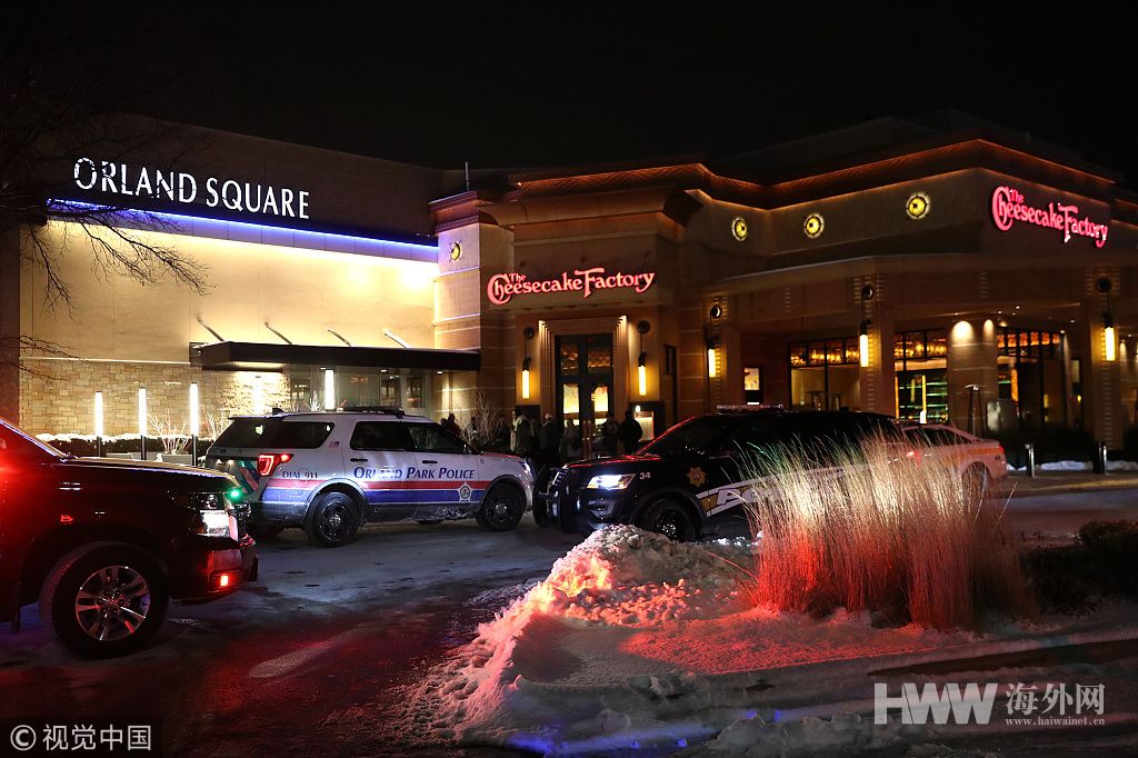 当地时间2019年1月21日晚上,美国伊利诺伊州奥兰帕克市发生枪击事件,警察和消防部门赶往现场。