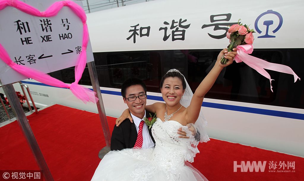 1月21日是春运第一天,中国铁路昆明局集团公司云桂铁路珠琳站迎来了一对新人,来自大理的小伙何学强在亲朋友好友陪伴下,乘坐动车迎娶新娘。婚礼是人生最重要的一个场面,引人注目的除了婚礼现场,那就是婚车了,你能想到最炫酷的婚车是什么?还是豪华超跑?No!这些婚车才是霸气侧漏!图为014年08月16日,吉林省长春市,190对新人乘价值1.95亿元动车组婚车完成集体婚礼。图片作者:董竞琦/视觉中国
