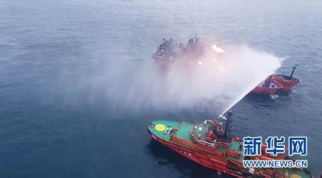 1月22日,在刻赤海峡附近水域,救援船只在起火货轮旁灭火。据报道,两艘船只悬挂坦桑尼亚国旗,共有31名船员,其中有包括来自印度和土耳其的公民, 他们中的一些人跳入大海以逃离大火。