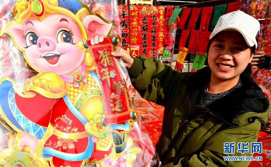 1月23日,在河北省石家庄市栾城区,市民在挑选装饰品。 春节临近,各地年味渐浓。 新华社发(李明发 摄)