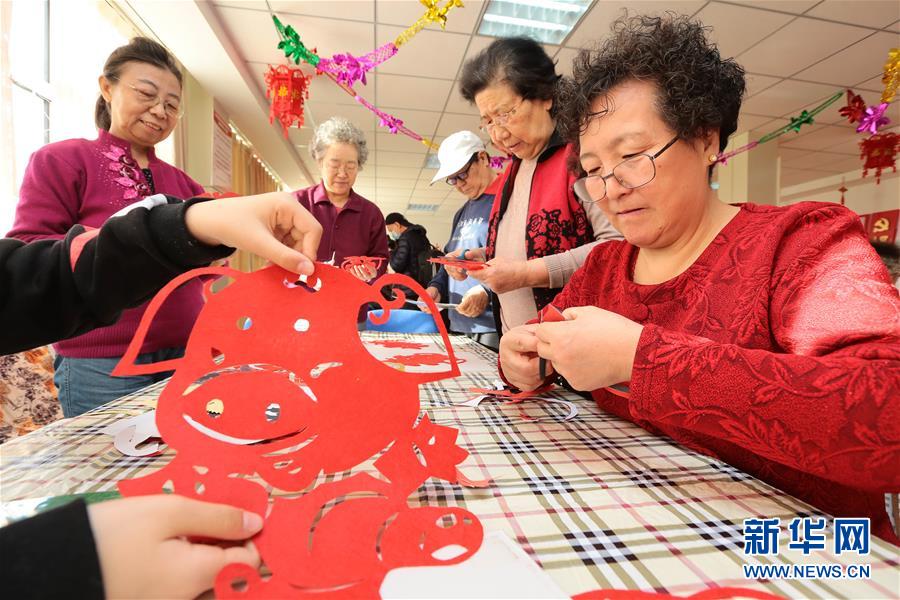 1月23日,天津市和平区天兴里社区居民在创作剪纸作品。 春节临近,各地年味渐浓。 新华社发(沈岳 摄)
