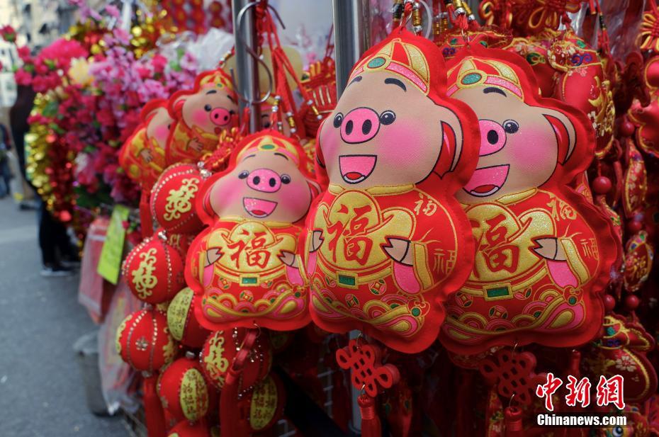 农历新年将至,香港深水埗福荣街两旁的商铺摆放大量的贺岁饰物,吸引不少市民游客前来采办年货。福荣街一带的商铺原本以售卖精品玩具为主,但每逄节日前后,两侧店铺都会特别把应节商品挂满在店外,令街道充满节庆气氛。中新社记者 麦尚旻 摄