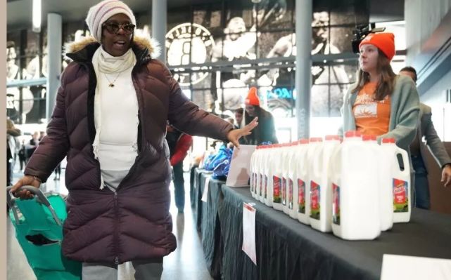 美国国土安全部雇员的日子也不好过。今年62岁的雇员安托瓦妮特·威廉姆斯从纽约市曼哈顿区坐一小时地铁,到布鲁克林区领取“食品银行”免费发放的食品。