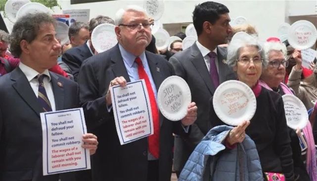 维诺利卡·塔克是抗议者中的一员,她说,她的雇主是一家给联邦政府提供餐饮服务的供应商,由于政府“停摆”,服务合同被暂停,大量基层员工“失业”。她作为合同工,因“停摆”损失的工时不会得到任何补偿,所以“停摆”持续越久,她损失就越大。