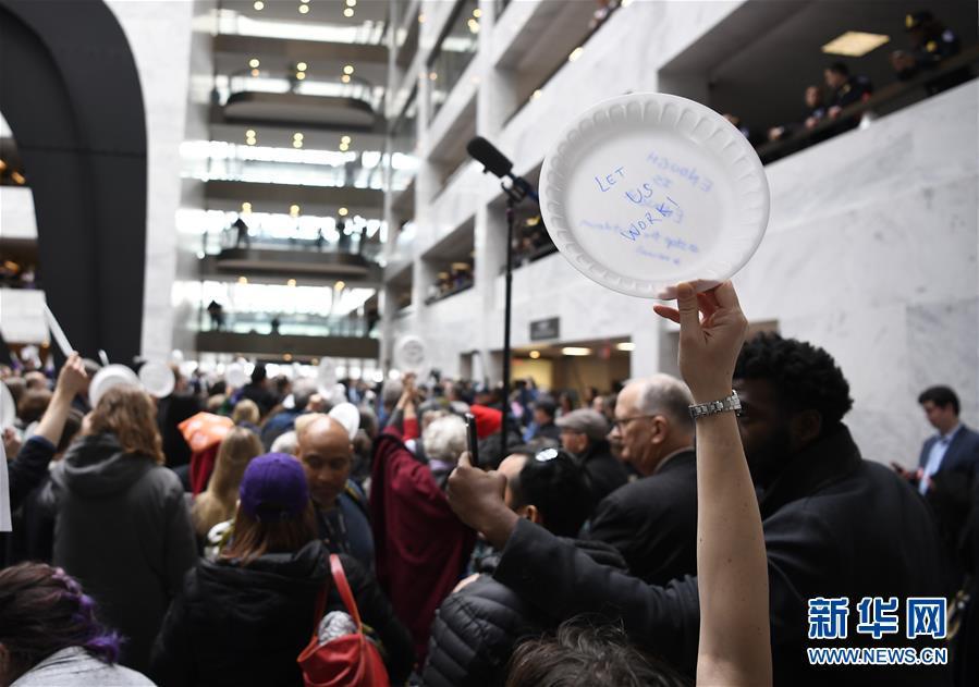 1月23日,在美国首都华盛顿,一些联邦政府雇员在一家公益组织的“应急食堂”外排队领取免费餐。 截至23日,从去年底开始的联邦政府部分机构“停摆”已持续33天,继续刷新历史最长纪录,约80万政府雇员这期间已错过一次工资发放,很多人手头越来越拮据,到期账单越积越多,不得不寻求外界帮助。 新华社记者 刘杰 摄