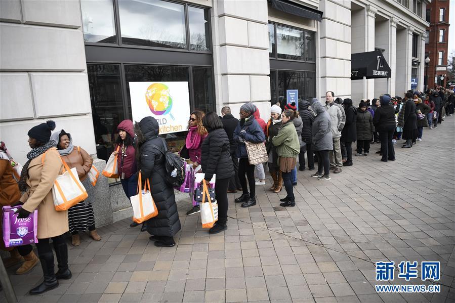 1月23日,在美国首都华盛顿,一些联邦政府雇员在一家公益组织的“应急食堂”外排队领取免费餐。 截至23日,从去年底开始的联邦政府部分机构“停摆”已持续33天,继续刷新历史最长纪录,约80万政府雇员这期间已错过一次工资发放,很多人手头越来越拮据,到期账单越积越多,不得不寻求外界帮助。 新华社记者 刘杰 摄
