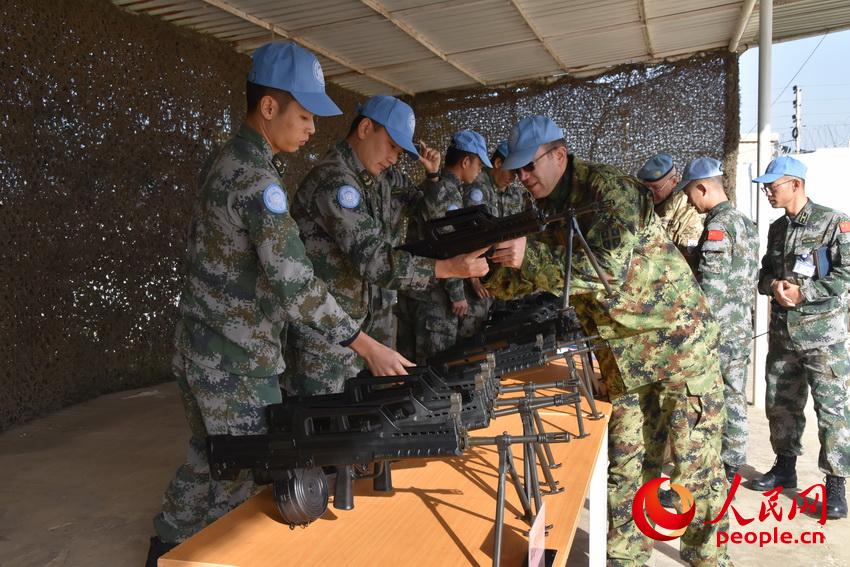 装备核查组人员对维和部队枪械装备进行核查(陈忠洪 摄)。