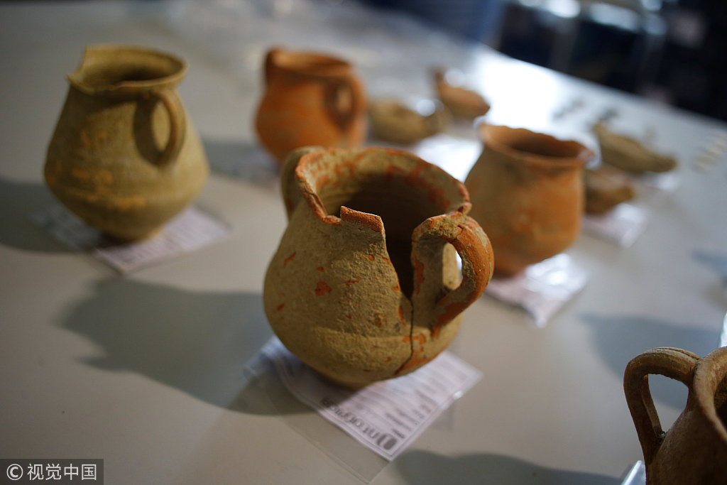 当地时间2019年1月24日,葡萄牙里斯本,当地一家餐馆地下发现古罗马墓地,发现2000年前的遗骸和各种艺术品。