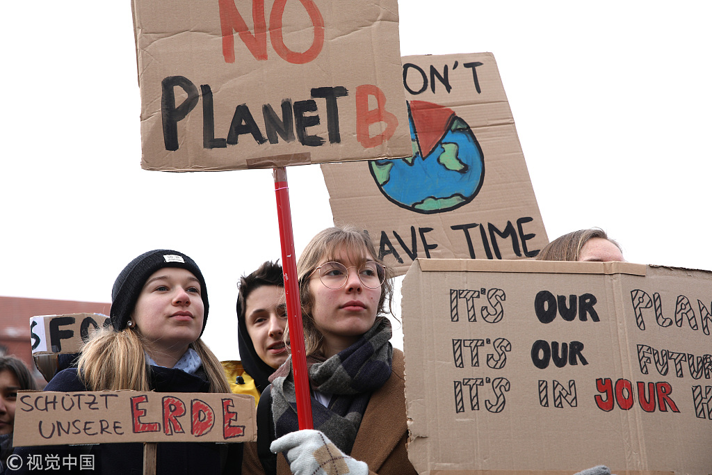 当地时间2019年1月25日,德国柏林,高中生游行抗议,要求政府实施更有效的政策应对气候变化。