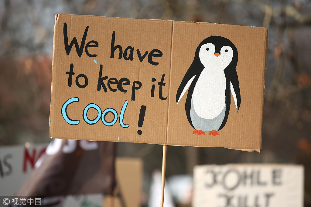 当地时间2019年1月25日,德国柏林,高中生游行抗议,要求政府实施更有效的政策应对气候变化。