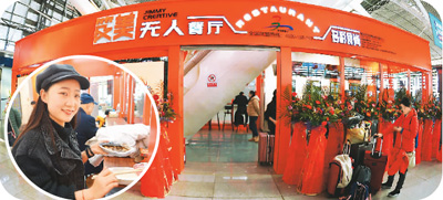大图为无人餐厅外景,小图为乘客成功购餐。 新华社发