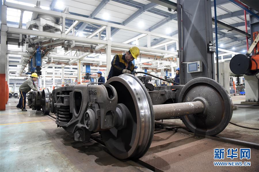 1月25日,重庆西车辆段职工在使用智能扳机对货运列车的车轮对进行检修作业。 春运期间,中国铁路成都局集团有限公司重庆西车辆段针对全段车辆以及“中欧班列”等重点列车加大检查、检修、安全巡查力度,确保列车运输安全。 新华社记者 唐奕 摄