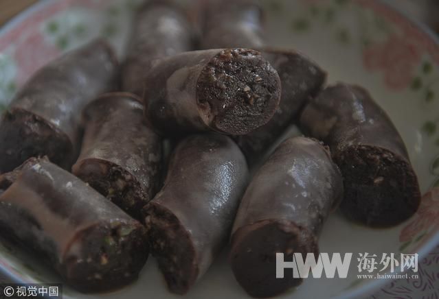 春节临近,在我国东北地区的广大农村,当地有杀年猪的习俗。提到杀年猪自然离不开杀猪菜,杀猪菜的滋味儿是每个东北人一年到头最挂念的一餐,这其中的血肠又是东北杀猪菜的精华。刚刚煮出来的血肠,稍微放晾一点,就可以趁着热乎食用了,这个时候口感最佳。血肠这道菜具有浓郁的东北特色,也是招待客人的一道硬菜。(来源:视觉中国)