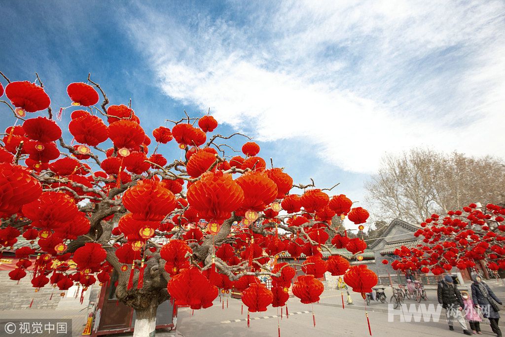 2019年1月27日,北京。过年的脚步越来越近,地坛庙会准备就绪,万盏红灯笼布置完毕,到处是红红火火的景象。