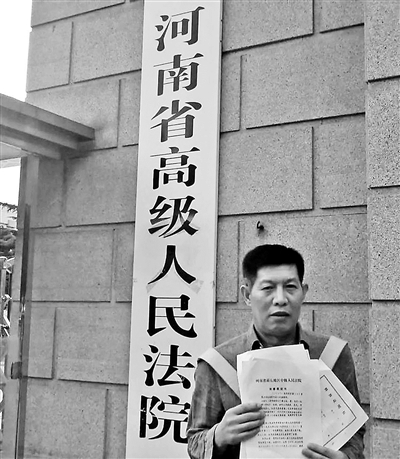 张玉玺此前前往河南省高院反映自己被发回重审22年的案件