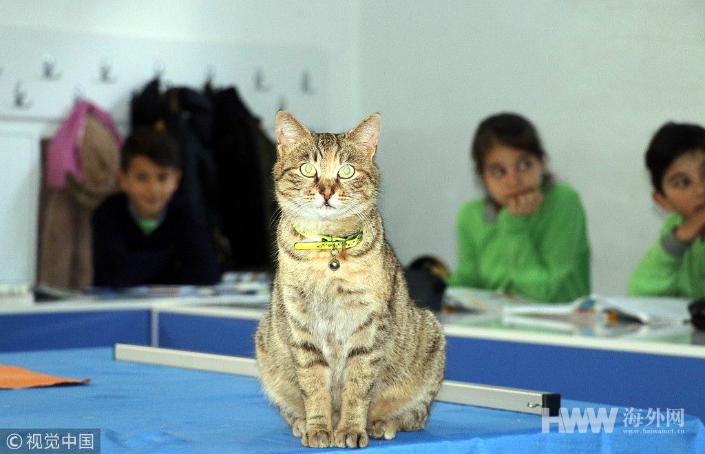 土耳其猫咪爱学习 端坐小学教室内“蹭课”