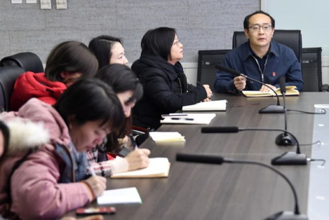 昌平区融媒体中心每日全媒体编前会。(2018年12月6日摄)新华社记者李欣摄