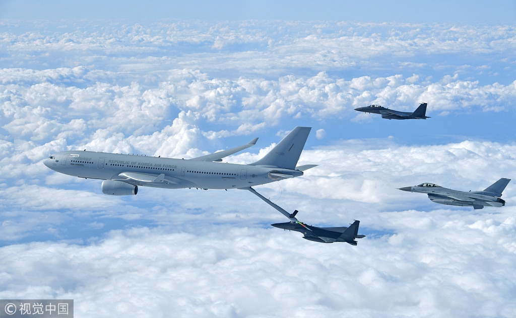 当地时间2019年1月30日,韩国金海市,韩国空军在釜山金海基地举行KC-330空中加油机服役仪式。