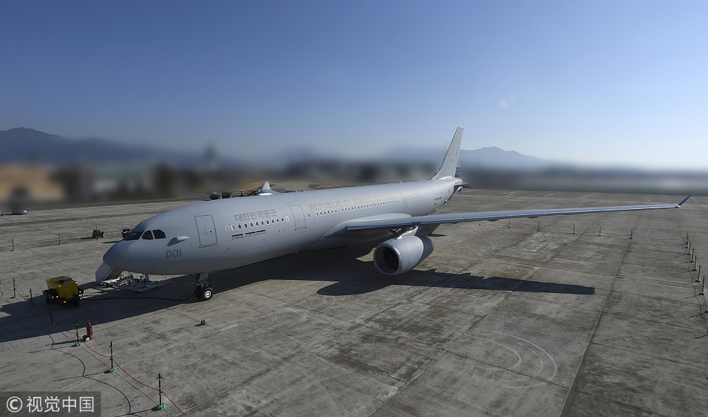 当地时间2019年1月30日,韩国金海市,韩国空军在釜山金海基地举行KC-330空中加油机服役仪式。