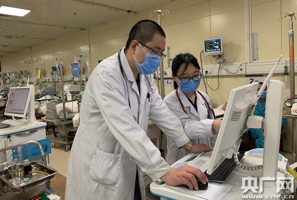 1月29日,刚上班的武军元,第一件事就是到抢救室查看病人病情。(央广记者 孙冰洁 摄)