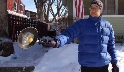 明尼苏达州的鸡蛋,拿到室外五秒就能被冻在锅上!