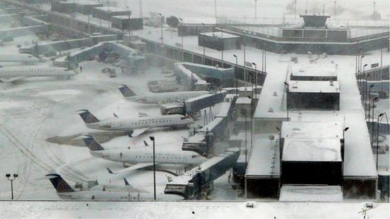 CBS报道中称,美国周二有2457个航班因极寒天气延误,有1360个航班被取消,周三也有1134个航班被取消。