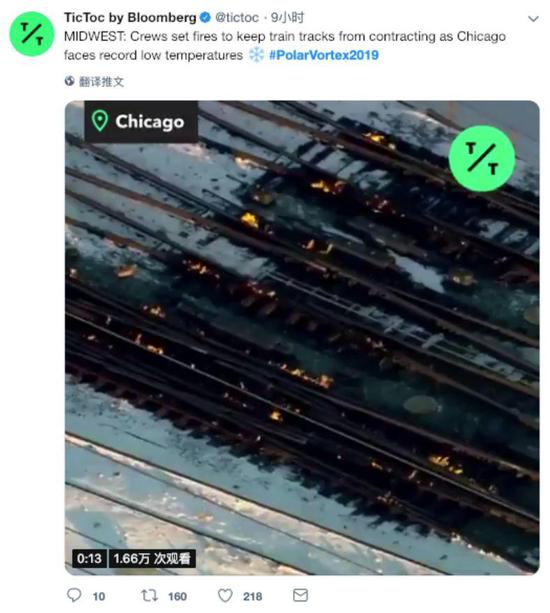 从周二开始,芝加哥的大部分铁轨由于极端低温已经无法正常使用,铁路工作人员不得不点火给铁轨升温。但由于这样风险太大,最终还是宣布停止所有进出芝加哥的火车。