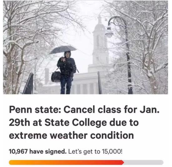 不过相比于上面这些通(被)情(逼)达(无)理(奈)的学校,有两所深处“极寒”地区的大学依然在坚持,他们的口号是:地 球不爆炸,宾夕法尼亚州立大学(PSU)和雪城大学不停课。