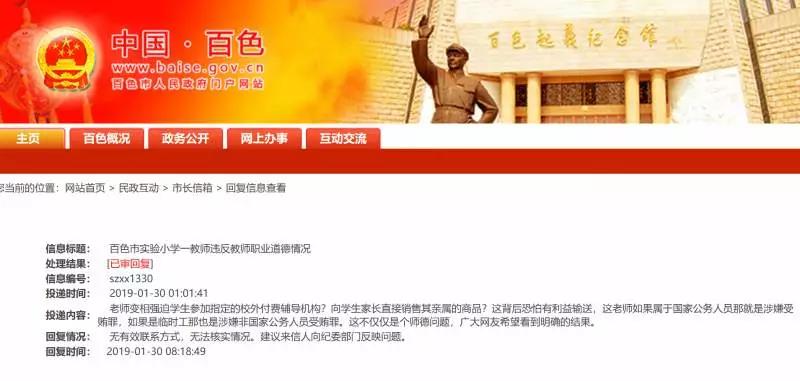 1月29日,百色市右江区新闻中心发布通报称,经初步调查,家长所反映的问题基本属实,目前已暂停该教师的班主任职务。
