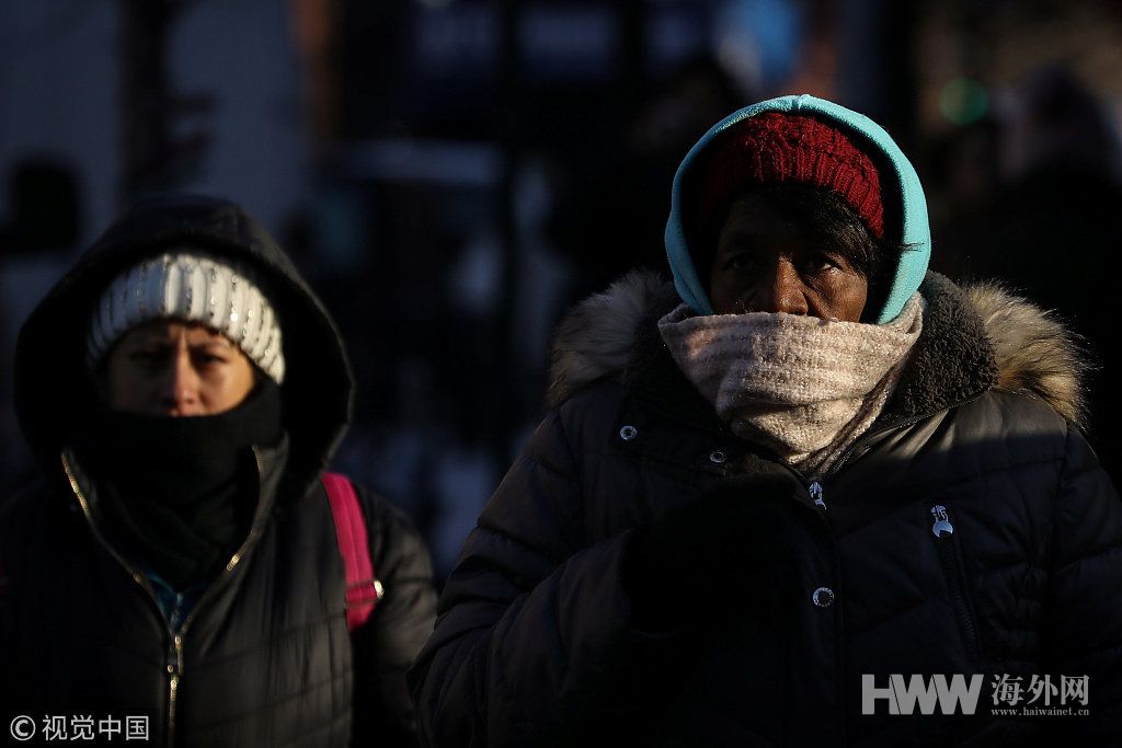 当地时间2019年1月30日,美国纽约,寒流来袭,民众出行全副武装御寒。