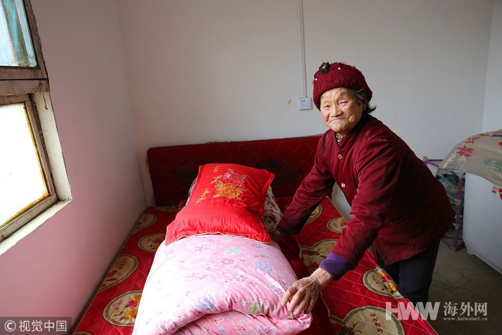 2019年1月20日,陕西安康镇坪县曙坪镇桃元村,住在半山坡上的谭少英老人已82岁,她独自一人留守在家,快过年了把儿子盖的被子洗得干干净净,整整齐齐地放在床上。31岁的儿子在山东打工,谭少英最盼望的就是过年。