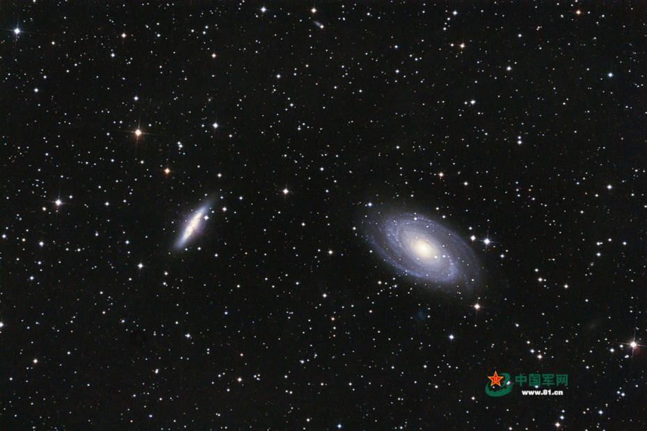 图为M81波德星系(右)和M82雪茄星系(左)  。图/祝成城  文/孙智英 图片来源:中国军网